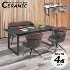 ダイニングテーブルセット 4点セット 4人掛け 長方形 幅150cm 幅180cm 伸長式 テーブル セラミック 大理石調 石目調 アイアン脚 ダイニングチェア