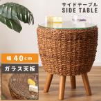 サイドテーブル 幅40 ディスプレイ 高さ45cm ガラステーブル ラウンド 丸 円形 アバカ ナチュラル 自然 天然 リゾート 南国 アジアン 机 テーブル ルンバブル