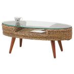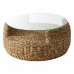 アバカ素材でできたロータイプのセンターテーブル コーヒーテーブル 収 丸 ガラス 一人暮らし おしゃれ アジアン リゾート バリ アンティーク ルンバブル 在宅勤務 [91091]