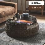 ラタンテーブル ラウンドテーブル ラタン調 幅80cm ガラス アバカ 天然素材 リビングテーブル ソファテーブル 小物収納 収納 ラタン 籐 木製 上品 北欧 おしゃ