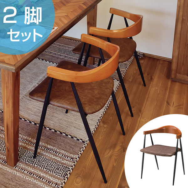 アームチェア 2脚セット アイアンフレーム 椅子 座面高44cm ( イス いす チェア チェアー 完成品 肘置き ダイニングチェアー 食卓椅子 リビングチェア )【3980円以上送料無料】