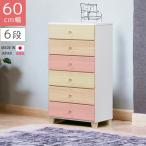 ハイチェスト 6段 収納 チェスト 幅60cm 引き出し タンス 白 ホワイト ピンク ベージュ イエロー たんす 国産 子供部屋