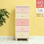 チェスト 幅40cm スリム 5段 収納 ローチェスト おしゃれ 姫系 タンス 白 ホワイト ピンク イエロー 国産 子供部屋