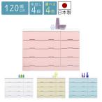 チェスト 4段 収納 洋服ダンス 幅120cm 完成品 ローチェスト おしゃれ タンス たんす 国産 ホワイト イエロー ピンク ブルー