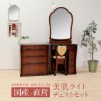 ドレッサー 一面鏡 ライト付き チェスト付き 収納 アンティーク 日本製 シャルルチェストセット