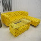 アウトレット 現品限り 未使用 送料無料 ラグジュアリー ソファセット 3点セット イエロー 3人掛けソファ オットマン ガラステーブル 組み合わせ自由自在