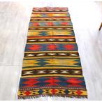 オールドキリム マナストゥル トルコキリム ランナー 174x66cm ブルー&イエロー レッド