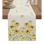 【並行輸入品】春の花テーブルランナー 長さ120インチ ファームハウスドレススカーフ イエロー デイジー 夏 ボタニカル 素朴なリネンテクスチャ