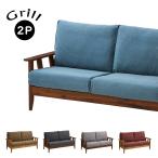2Pソファ グリル ファブリック 2人掛け デニム 木製 デニムソファ 北欧 ウォールナット 天然木 木フレーム 木肘 肘あり 洗える ドライクリーニング可