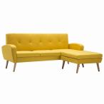 vidaXL 3人掛けソファ フットスツール付き 布製 イエロー 家具 ソファ