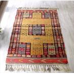 ギャッベ イラン産手織りラグ 142x100cm オレンジ イエロー 糸杉の