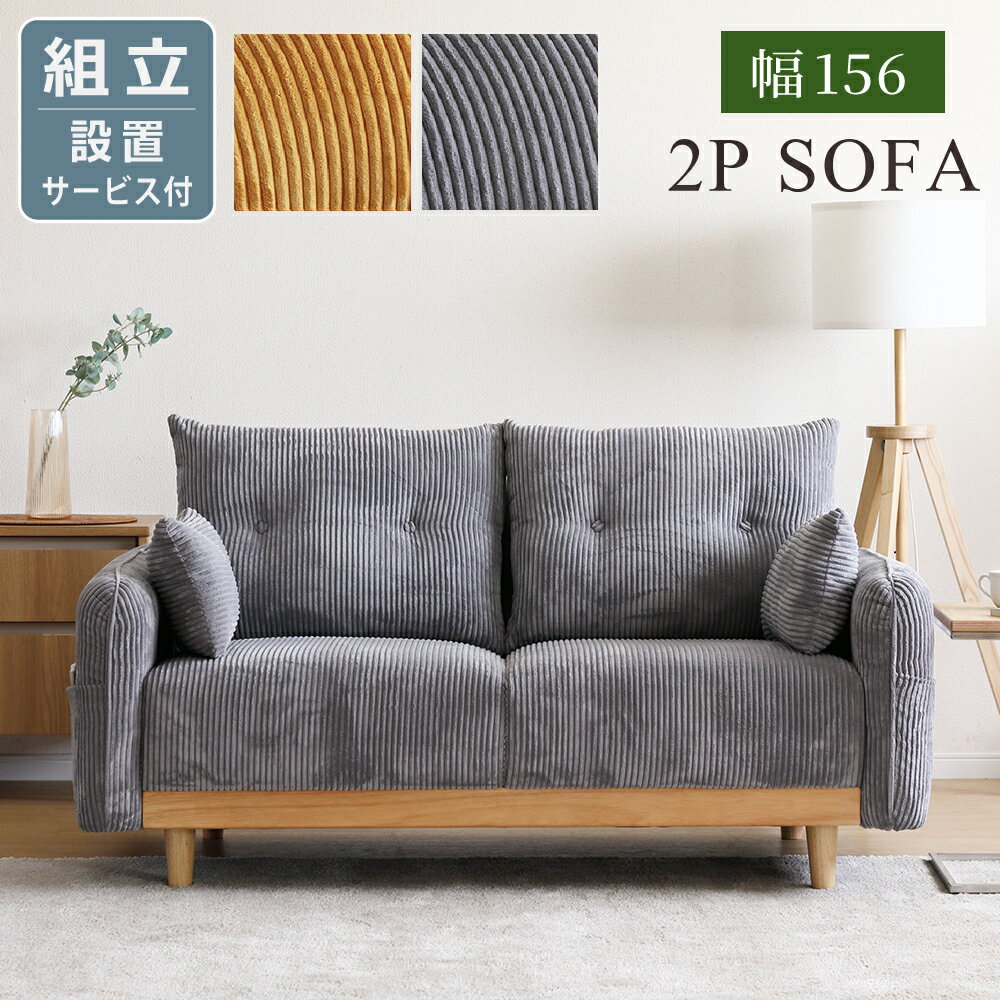 [10%offクーポンあり4~11日] ソファ 2人掛け 北欧 ソファー 2人 コーデュロイ ソファー ファブリック お洒落 2人掛けソファ クッション 2人掛けソファー 2Pソファ 黄色 きいろ 肘あり ミニクッション 2人用 ソファ お掃除ロボット対応 イエロー グレー ポケット付き