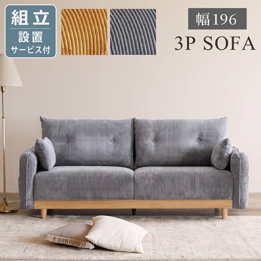 [10%offクーポンあり4~11日] ソファ 3人掛けソファー 北欧 ソファー 3人 コーデュロイ ソファー ファブリック お洒落 3人掛けソファ クッション 3Pソファ 3P SOFA 黄色 きいろ 肘あり ミニクッション 3人用 ソファ お掃除ロボット イエロー グレー 雑誌収納