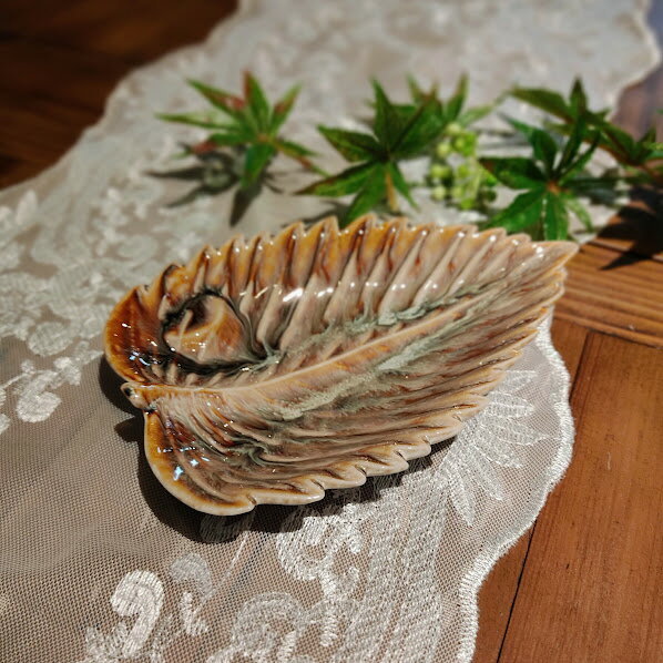 Earthy Deco-tray Leaf-large BE トレイ 釉薬 プレート 小物置き 小物入れ オブジェ インテリアグリーン プレゼント 贈り物 おしゃれ F04-0276