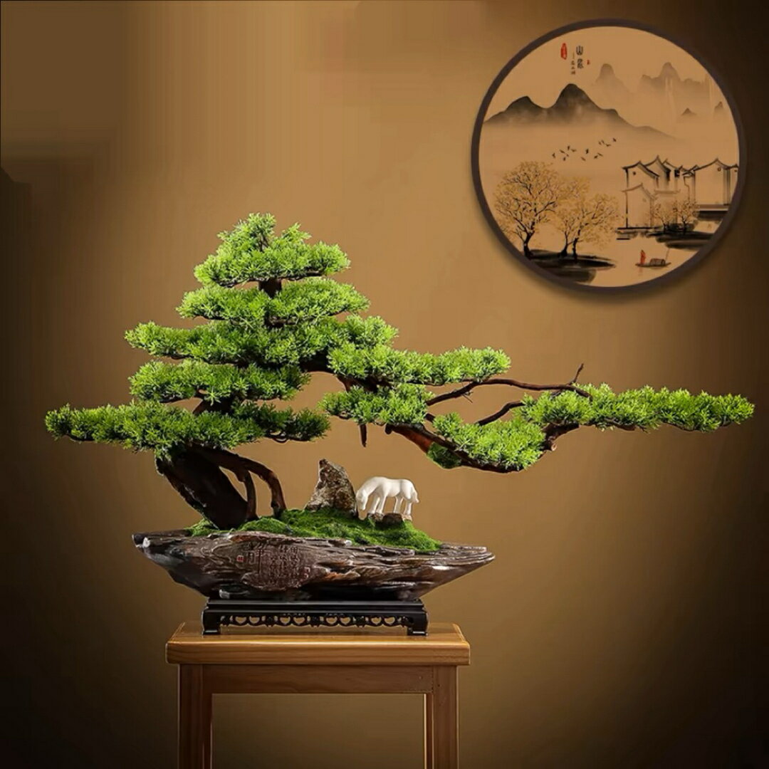 A032970インテリアグリーン 高級模造迎客松盆栽 置物 禅意迎客松盆栽装飾品人工観葉植物