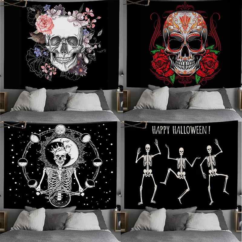 タペストリー スカル 骸骨 ウォールデコレーション インスタグラム風 壁装飾 寝室 リビング ルーム インテリア ファンタジー ユニーク 民族調 レトロ アンティーク調 ポリエステル生地