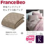 フランスベッド 寝装品 セレクト3点セット 羊毛メッシュベッドパッド1枚 エッフェスタンダード マットレスカバー2枚 お得なセレクト3点パック キング