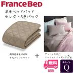 フランスベッド 寝装品 セレクト3点セット 羊毛メッシュベッドパッド1枚 エッフェスタンダード マットレスカバー2枚 お得なセレクト3点パック クイーン