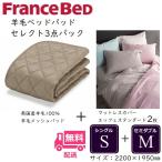 フランスベッド 寝装品 セレクト3点セット 羊毛メッシュベッドパッド1枚 エッフェスタンダード マットレスカバー2枚 シングル+セミダブル(2200×1950)