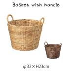 収納 ウォーターヒヤシンス 持ち手付 ラウンド バスケット 小 約直径37×高さ26cm