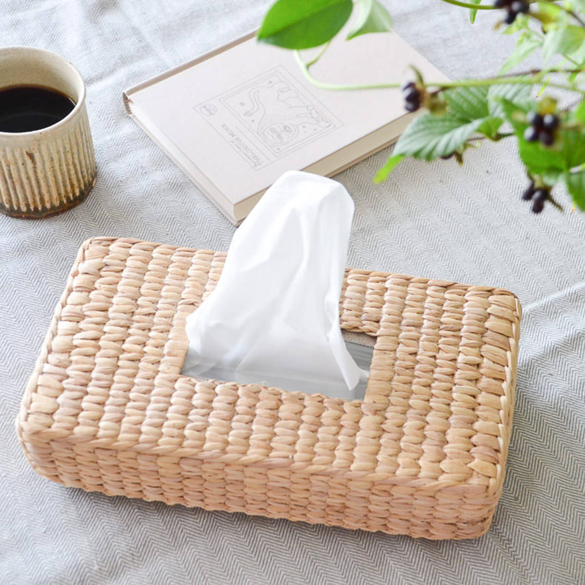 ティッシュボックスケース ウォーターヒヤシンス ソフトパック可 手編み インテリアに馴染む タイ製