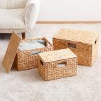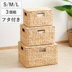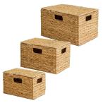 天然素材 バスケット フタ付き スクエア S M L 3個組 ウォーターヒヤシンス ( かご カゴ 籠 収納 小物収納 ハンドメイド 収納バスケット )