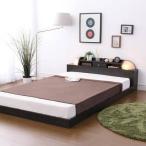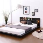 ベッド ダブル ローベッド 低い 宮 棚 スマホ メガネ リモコン ラック ライト 木製 北欧 高級 コンセント 充電 おしゃれ 照明 ボンネルコイル マットレス付 黒木