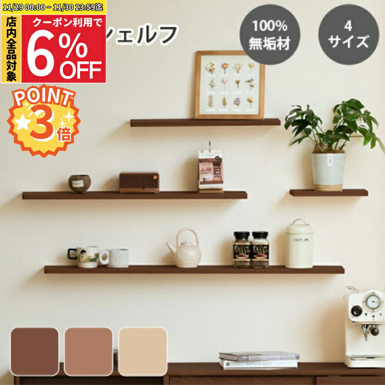 【6%OFF◆P3倍 30日まで】【楽天3位・レビュー特典】ウォールシェルフ 木製 壁掛け 飾り棚 60cm 壁 ウッドシェルフ 30 シェルフ棚 90cm 120cm かざり棚 無垢材 天然木 壁面収納 賃貸OK ウォールラック スリム 棚板 ラック リビング 壁掛けラック ブラウン ナチュラル