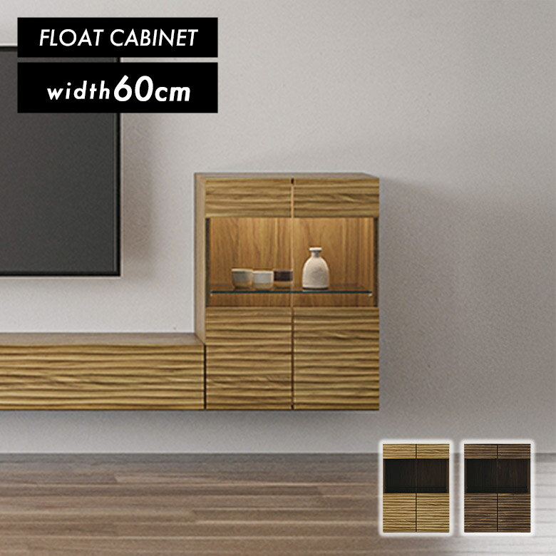 【全商品に使える10%offクーポンあり!!】 キャビネット リビング収納 フロートタイプ 壁掛け 幅60cm 扉付き 木製 天然木 コンパクト おしゃれ モダン シンプル 北欧 和モダン ウォールシェルフ ガラス扉 飾り棚 ディスプレイ収納 オーク ウォールナット