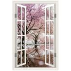 ウォールステッカー 窓枠 桜 さくら 花 フラワー 日本製 MU3 壁紙 シール 木々 森林 湖 沼 ピンク 植物 風景 景色 北欧 旅行 写真