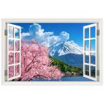ウォールステッカー 窓 富士山 桜 日本製 春 さくら fuji 自然 壁紙 シール ポスター 絵画 お風呂 浴室 DIY リフォーム リメイク