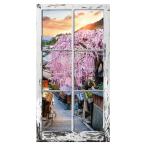 ウォールステッカー 窓枠 格子 大阪城 桜 さくら 日本製 壁紙 和風 和柄 シール 風景 景色 旅行 写真 トイレ 浴室 お風呂 DIY リフォーム インスタ 映え