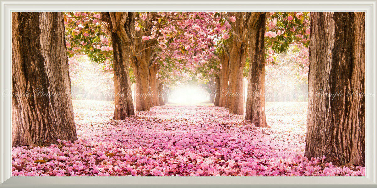 絵画風 壁紙ポスター (はがせるシール式) -窓の景色- さくら並木 鮮やかな桜の絨毯 サクラ 並木道 ピンク 花びら絨毯 パノラマ 【扉なし窓仕様】 キャラクロ FSKR-024NS1 (パノラマS版 1152mm×576mm) <日本製> ウォールステッカー お風呂ポスター