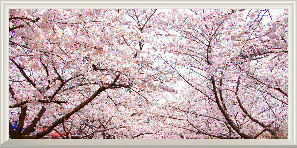 絵画風 壁紙ポスター (はがせるシール式) -窓の景色- さくらの開花 春の景色 桜の木 サクラ 八重桜 ソメイヨシノ 【窓仕様/トリックアート】 キャラクロ FSKR-025MS1 (パノラマS版 1152mm×576mm) <日本製> ウォールステッカー 窓 お風呂ポスター
