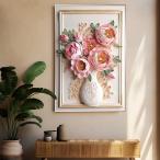 ウォールステッカー だまし絵 立体的 レリーフ 絵画風 花瓶 花 牡丹 ピオニー ゴージャス 壁デコ 北欧風 DIY リビング 寝室
