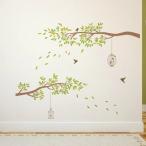 ウォールステッカー 木の枝 リーフ 小鳥 バード 初夏 フレッシュ グリーン アートステッカー インテリアシール DIY 剥がせる