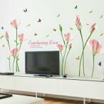 ウォールステッカー 花 フラワー 植物 おしゃれ カフェ モダン 英字 高級感 ステッカー 木 ウオールステッカー ピンク 緑 シール 壁紙 英文 キッチン vr0643