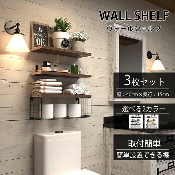 【10%OFFクーポン 25日限定】ウォールシェルフ ラック 壁掛け棚 3個セット 木製 ラック 天然木製 収納棚 ウォールラック 壁つけ棚 取り付け簡単 小物置き シンプル 玄関 リビング キッチン トイレ 洗面所 飾り棚 おしゃれ 北欧 デザイン 北欧 アンティーク マンション