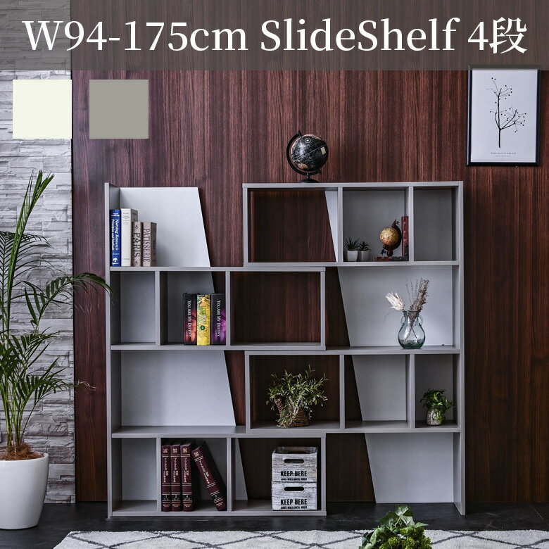 \12/4 4h限定☆対象商品に使える8%offクーポン配布中/ オープンラック スライド式 4段 木製 オープンシェルフ 伸縮式 幅95 リビング収納 おしゃれ 本棚 書棚 シェルフ ラック 伸縮 ウッドラック 北欧 収納 棚 ブックシェルフ 95 グレー ホワイト