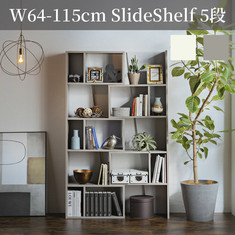 【全商品に使える10%offクーポンあり!!】 オープンラック 5段 木製 リビング収納 おしゃれ 本棚 書棚 スライド式 オープンシェルフ 伸縮式 幅65 シェルフ ラック 伸縮 ウッドラック 北欧 収納 棚 ブックシェルフ 65 グレー ホワイト