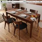 ダイニング5点セット エクステンションテーブル 幅120-150-180cm 伸縮式 天然木ウォールナット突板 布張りチェア 北欧テイスト