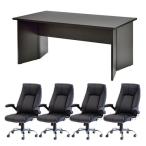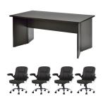 法人限定 応接セット 4人用 5点セット 会議セット 会議テーブル 幅1600×奥行900mm エグゼクティブチェア ローバック テーブル 椅子 セット GZPLT-1690DB-S3