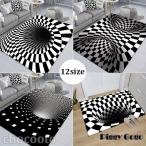 ラグマット 3D渦巻錯覚敷物 カーペット 絨毯 ラグ モケット 遮音性 敷物 大判 玄関マット 四角 地よいスペース じゅうたん 滑り止め付け 黒と白の三次元錯覚