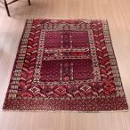 トルコの手織り絨毯 トルクメン族 182x121cm レッド トライバルラグ 草木染