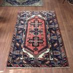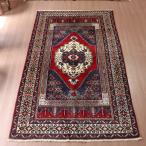 オールドギャッベ トライバルラグ Old Tribal rug, Shiraz, 204x115cm レッド&ネイビー メダリオン