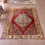 トルコじゅうたん・エリアラグ/オールドカーペット182×139cmチャナッカレ・レッド ドラゴンの爪を持つ六角メダリオン