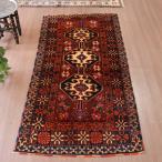 部族絨毯 トライバルラグ カシュカイ族 247x125cm 入り組んだ爪を持つ大きな3つのメダリオン