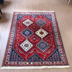 トライバルラグ 部族絨毯 イラン南部ヤラメ Yalameh 200x148cm レッド 6つのひし形メダリオン 鳥モチーフ
