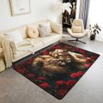 【並行輸入品】Castle Fairy ロマンチック ライオン エリアラグ ヴィンテージ レッド ローズ ドリーミー フラワー 抜け落ちない ラ