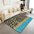 【並行輸入品】ヒョウ柄エリアラグ 5x6フィート6インチ、ブルー グリッター シャイニー (ダイヤモンドなし) 装飾 ノンスリップ ラグ ティー